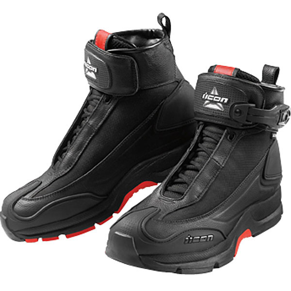 דוגמה למגף רכיבה נמוך – Icon Accelerant Waterproof Boots – סוליה קשיחה ויציבה, עור בשילוב גורטקס, סגירה בחלקה העליון. הוא אמנם גבוה יותר מהדוגמאות הקודמות, אבל גם הוא רק מגיע לאזור הקרסול ומכסה אותו מעט. השאלה היא כמה באמת מגף כזה מגן על הקרסול.