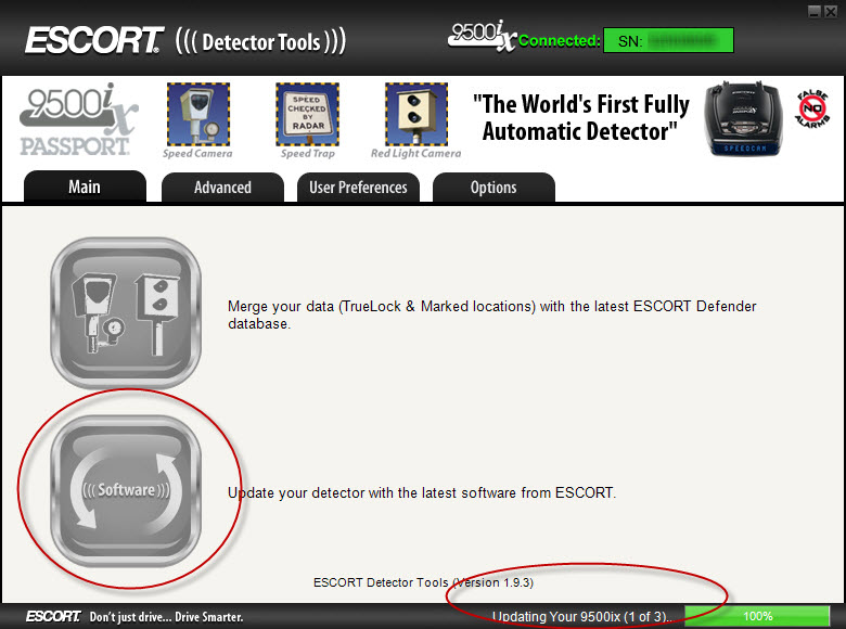 בסיס נתוני מצלמות הגאטסו הוא כמובן אחד היתרונות של מכשיר ה- Passport 9500ix לעומת גלאי הוולנטיין 1, ולכן אנחנו כמובן נרצה שהוא יהיה מעודכן. היצרן מקבל קובץ נתוני מצלמות מהיבואן בישראל (גילוי נאות – אני מספק לו את הנתונים), ובסיס הנתונים מעודכן אחת לחודש.