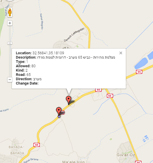 זה מיקום המצלמה, למי ששכח (המשטרה תיקנה את המחדל והציבה תמרור הגבלת מהירות ל- 80 מיד לאחר הצומת):