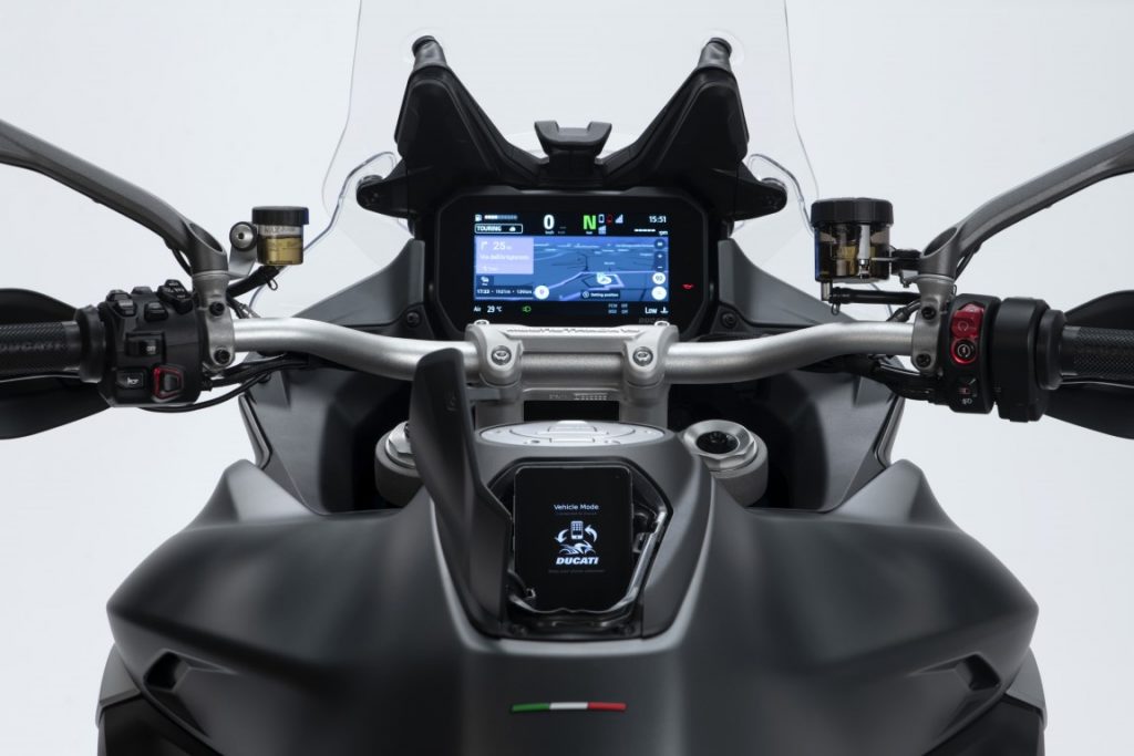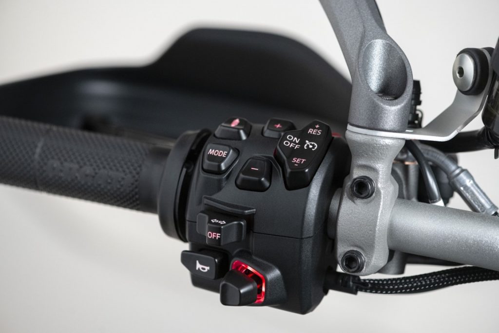 ראשית, כפי שכתבתי כאן באתר, המולטי החדש הוא האופנוע הסדרתי הראשון שיימכר לציבור עם מערכת רדאר שמספקת שליטה על בקרת שיוט – Adaptive Cruise Control – ACC – שמירת מרחק מכלי רכב הנעים לפני האופנוע, עם האטה והאצה בהתאם לצורך, וכן התראות על רכבים או עצמים מאחורה (שטחים מתים) – Blind Spot Detection – BSD. האינטראקציה עם המערכת מתבצעת באמצעות מתגים בכידון מצד שמאל, עם חיווי בתצוגת ה- LCD הצבעונית.
