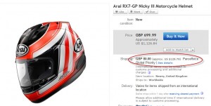 לדוגמה, קסדת Arai RX-7 GP מאיביי שנמכרת בסכום מסויים, ועליו יש סכום לא קטן עבור דמי משלוח: