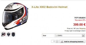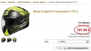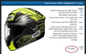 לדוגמה, קסדת Shoei X-Spirit 2 לרכישה בישראל, אצל היבואן (צילום מסך נכון לרגע כתיבת שורות אלה, מן הסתם המחיר עשוי להשתנות בכל רגע בעתיד):