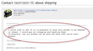 לדוגמה, יצירת קשר עם מוכר בנוגע למשלוח קסדה לישראל: