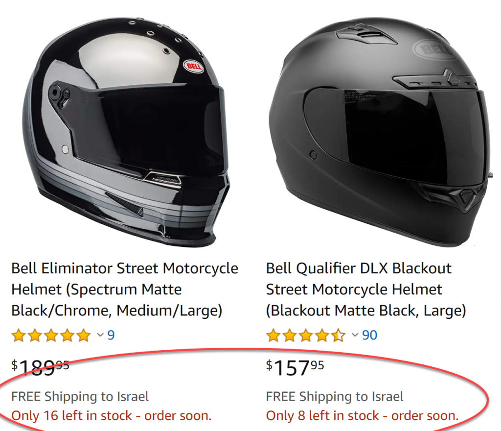 עידכון 2019: מאז הקלות הייבוא האישי והצפייה לכניסת אמזון לישראל, יבואנים רבים מבצעים ימי מכירות נקודתיים שבהם נמכרות קסדות במחירים הקרובים מאוד למחירי חו"ל + מע"מ. מעת לעת ניתן למצוא קסדות מדגמים מסויימים במחירים שהם אפילו זולים מחו"ל. שווה לבדוק לפני שרצים להזמין אונליין, ולו בשביל השירות שאפשר לקבל בארץ.